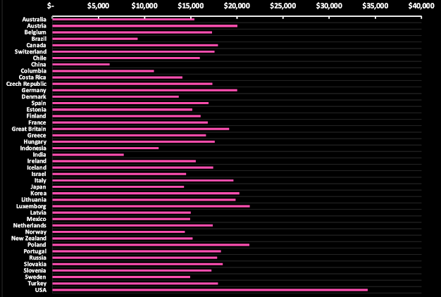 However, inevitably, the greater the share of GDP taken by government through taxation, the smaller is the influence of private sector decision forces. The decision process in government enterprises lacks the self-disciplining forces that makes the private market so efficient and productive. Social democracies are thus readily distinguished by their high tax burdens and the attendant loss of private market efficient. The purpose of this blog post is to illustrate the different degrees to which countries have avoided or embraced the insertion of government authority over the private markets.